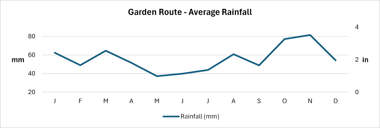The Garden Route is a pristine area on the South African coast that stretches from Witsand in the Western Cape to the border of Tsitsikamma and Storms River in the Eastern Cape. Summer is an excellent time to visit this region as days are long (13.5-14 hours) and temperatures range between 28 – 29°C (82- 84°F). With no specific rainy season and pleasant temperatures all year, The Garden Route is the perfect destination no matter which month you travel in.